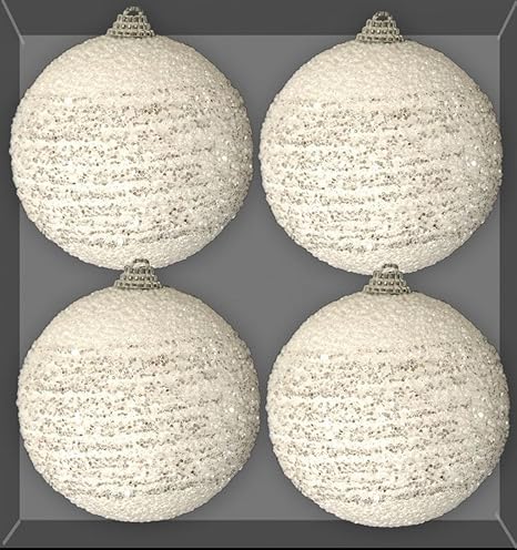 4 Palle Di Natale Effetto Ghiaccio Neve Con Brillantini